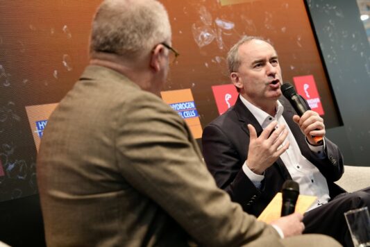 Im Rahmen seines Messebesuchs traf sich der Wirtschaftsminister mit bayerischen Unternehmen und Start-ups aus den Branchen Wasserstoff, Energiewirtschaft, Software und Maschinenbau. Auf dem Programm standen zudem Gespräche mit vdma-Präsidenten Bertram Kawlath und Fraunhofer-Präsident Prof. Dr. Holger Hanselka, der Austausch mit einer rumänischen Wirtschaftsdelegation sowie ein Impulsgespräch über die bayerische Wasserstoffpolitik.