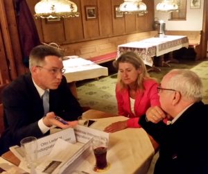 v.l. Der Landtagsabgeordnete Otto Lederer im Gespräch mit der Integrationsbeauftragten Mechthilde Wittmann, MdL, und Kreisgeschäftsführer der Caritas Rosenheim, Erwin Lehmann.
