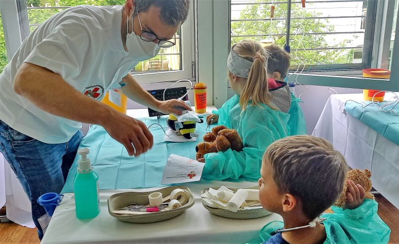 Gründer des Teddybärkrankenhaus Rosenheim ist der junge Mediziner Nico Hanny. Im Jahr 2017 holte er diese Idee, die es in anderen Ländern schon länger gibt, auch zu uns in die Stadt. Ziel ist es: Kindern schon möglichst früh in ihrem Leben die Angst vor der Klinik und ärztlichen Behandlungen zu nehmen. In den vergangenen zwei Jahren konnten aufgrund der Corona-Pandemie Besuche in diesem ganz besonderen Krankenhaus aber nur noch per Internet stattfinden. Nun endlich gab es wieder realen Besuch von Kindern. Bereits am Vormittag kamen insgesamt über 200 Buben und Mädchen in das Schüler- und Studentenzentrum in der Pettenkoferstraße 8 in Rosenheim. Dort hatte Nico Hanny und sein Team – rund 20 weitere junge Ärzte, Pfleger und Erzieher – den ersten Stock der Einrichtung in ein kleines Krankenhaus für Kuscheltiere verwandelt. Vom OP-Saal bis zur Apotheke, in der es dann statt Medizin Gummibärchen gab, war alles vorhanden. Teddybärdame „Maria“ wurde als echter Notfall natürlich sofort behandelt. Die Diagnose lautete: Schlüssel verschluckt. Ihr Besitzer, der dreijährige Leon, durfte die „Operation“ unter fachkundiger Anleitung von Nico Hanny selbst durchführen. Am Schluss legte er seinem geliebten Kuscheltier noch einen Verband und ein Pflaster an. Schon ging es dem Teddybär wieder gut und Leon strahlte über das ganze Gesicht. „Die Kinder waren heute ganz aufgeregt“, erzählt Innpuls.me ein Erzieher des Gemeindekindergartens Neubeuern. Die Idee mit dem Krankenhaus für Kuscheltiere findet er eine „super Idee“. Insgesamt wurden in dem Teddybärkrankenhaus Rosenheim bis jetzt schon 3238 Kuscheltiere erfolgreich behandelt. Heute werden es sicherlich noch mehr. Öffnungszeiten: 8.30 bis 16.30 Uhr.