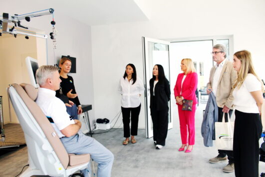 Gerade diese Freude und Leidenschaft für den eigenen Beruf wollen das Führungstrio des ZGT fördern. „Die Therapeutinnen und Therapeuten wollen ihren Patienten die bestmögliche Behandlung anbieten – und dafür braucht es verschiedene Möglichkeiten und Hilfsmittel. Rein auf manuelle Therapie zu setzen, ist einfach nicht mehr zeitgemäß. Wir haben deshalb rund 2,5 Millionen Euro in die Anschaffung neuester Technologien und Geräte investiert, um passgenaue Behandlungsoptionen anbieten zu können. Aber auch Behandlungsräume, in denen man sich wohlfühlt oder andere Trainingsumgebungen wie ein Schwimmbecken helfen ungemein“, erklärten Nadine und Denise Raff. Zudem investieren sie viel in Aus- und Weiterbildung ihrer Mitarbeiterinnen und Mitarbeiter.