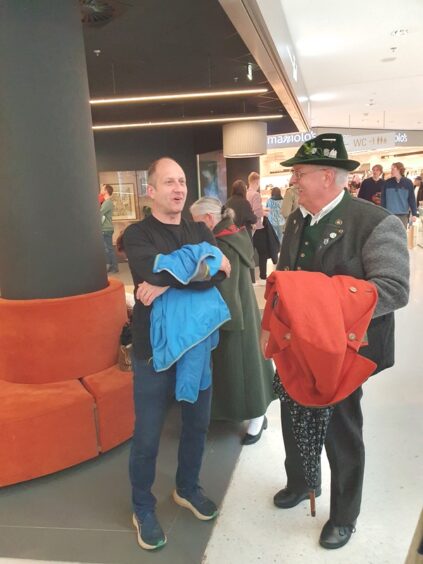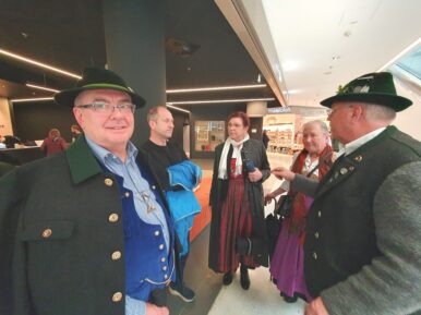 Ein Treffen mit Alexander Schatz, Landesverbandsobmann vom Tiroler Landestrachtenverband ergab sich aus ebenso, wie zwischendurch eine Kaffeepause. Zu einer solchen lud Alex die bayerischen Gäste ein. Die Abende ließ die Gruppe aus Bayern im historischen Ambiente des Stiftskellers Innsbruck in der Stiftgasse 1, einem Eigentum der Edith-Haberland-Wagner-Stiftung, sehr gemütlich ausklingen.