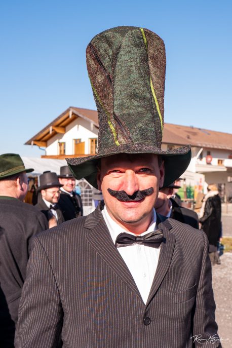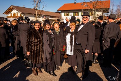 Ganz Söllhuben war auf den Beinen, als der örtliche Trachtenverein “D´Hochlandler” zur heurigen Bettelhochzeit einlud. Lisbert Vollinger und Odlgundis Furzner sagten sich zwar auf dem Misthaufen das “Ja-Wort” und schworen “ewige Treue” – doch schon die Hindernisse und Eskapaden bei Tageslicht ließen schon befürchten, dass die Ehe nicht bis zum Anbruch des nächsten Tageslichtes halten wird. Die „Braut“ ist ziemlich groß und maskulin, der Bräutigam wesentlich kleiner. Schönheit ist keine Bedingung für eine Bettelhochzeit. Auf dem Misthaufen werden die beiden bis zum Aschermittwoch „verheiratet“. Ein Hochzeitszug mit geschmückten Wagen führte durch Söllhuben zum Standesamt. Es war ein stattlicher Hochzeitszug mit Hochzeitskutsche, Kammertwagen mit der Mitgift der Braut sowie der ganzen narrischen Hochzeitsgesellschaft und einigen Hundert Zuschauern. Die Garderobe für die Hochzeitsgesellschaft auch heute dem Anlaß gemäß sehr festlich „schwarz/weiß.“ Hochzeitslader war Simandl Gscheidmayer, der Grattler von Parnsberg. Eines ist sicher: der Trachtenverein, die Wildenwarter und Söllhubener Musikanten, die Progoder, die Ehrleute, die Hochzeitsleute und alle, die im Wege oder am Wegrand standen, sie alle hatten eine Menge Gaudi. So fand ein Faschingstreiben statt, bei dem die Gäste nach der Hochzeit noch ausgelassen auf das Brautpaar anstoßen können, gemäß dem Motto „Vivat das elende Brautpaar!“ Natürlich fand auch noch ein „Jungfrauenlauf“ statt. Von dieser Freude mögen diese Bilder von der Söllhubener Bettelhochzeit zeugen.