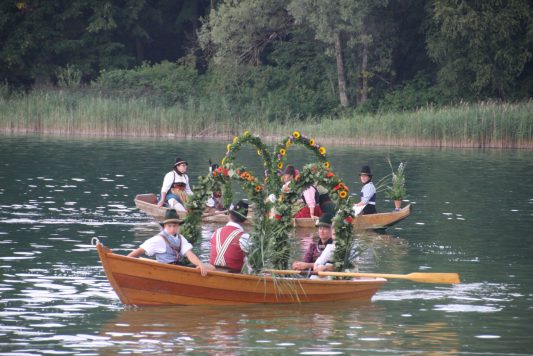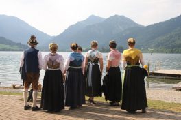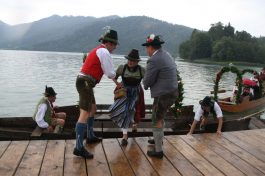 Auch in diesem Jahr nahm eine Abordnung des Beurer-Gwand am Altschlierseer Kirchtag, “dem kloana Kirta”, teil. Die zu erwartende große Hitze ließ diesmal den Teilnehmerkreis arg schmelzen. Ein Regenschauer begeleitete die Teilnehmer aus Neuhaus, welche mit dem Boot zum Kirchtag kamen.