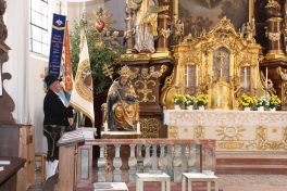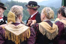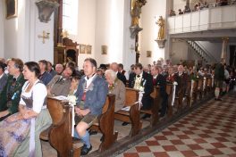 Empfangen wurden sie am Seeufer von den anderen Gästen aus Schliersee, Neubeuern, München, Hinterskirchen, Grafing und weiteren Gemeinden. Gemeinsam zogen die Trachtenfrauen, Männer und Kinder begleitet von der stellver. Ministerpräsidentin Ilse Aiger zum Gotteshaus, welches dem Hl. Sixtus, Papst und Märtyrer geweiht ist. Ein beeindruckender Gottesdienst endete mit der Hymne “Großer Gott” sowie der Bayernhymne. Kirchenzug und Gottesdienst wurden mitgestaltet von der Musikkapelle Niklausreuth.