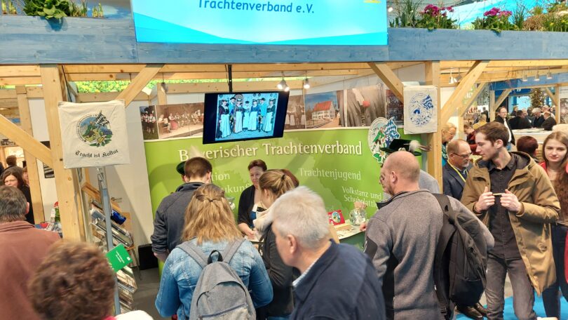 Für die Präsentation am Stand des Bayerischen Trachtenverbandes benötigt der Bayerische Trachtenverband noch Filmszenen von Plattlern, Volks- und Figurentänzen, Festzügen usw. Die Szenen werden am Stand auf einem Bildschirm ohne Ton wiedergegeben, damit “lebende Bilder” noch mehr das Interesse an unserer Arbeit wecken. Wer solche Aufnahmen (kostenlos und ohne Urheberrechte) zur Verfügung stellen kann und will, setzt sich bitte mit Standdienstleiter Walter Weinzierl in Verbindung.