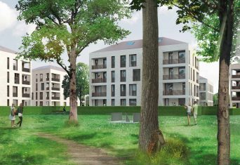 Bereits im Juli können Beschäftigte des Bezirks Oberbayern und der kbo-Kliniken in 55 Neubauwohnungen an der Apfelwiese im Jugendstilpark Haar einziehen. Bis zum Sommer sind es 115 Wohnungen mit 7 520 Quadratmetern hochwertigem Wohnraum sowie 149 Tiefgaragenplätze., für die sich der Bezirk Oberbayern die Belegungsrechte von der Oberbayerischen Heimstätte (OH) gesichert hat.
