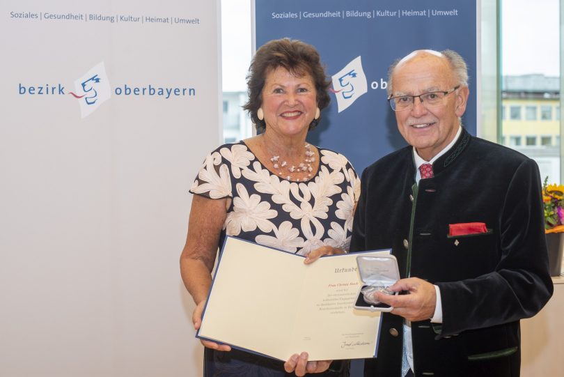 So viel ehrenamtliche Tätigkeit ist vorbildlich. Der Bezirk Oberbayern möchte als äußeres Zeichen der Anerkennung den verschiedenen Ehrungen, die Christa Stock bereits erhalten hat, wie beispielsweise „pro meritis“ des Bayerischen Kulturministeriums (1997), die Bezirksmedaille hinzufügen.