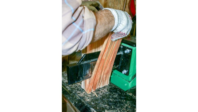 Doch warum musste es ausgerechnet Lärche sein? Stefan Rapold kennt die Antwort: „Weil der rötliche Farbton schön aussieht und weil Lärche ein sehr haltbares Holz ist.“ Das Mesnerhaus in Kloster Seeon ist nur eines von vielen Projekten, die seine Werkstatt momentan beliefert. Schon vor dem Ukraine-Krieg war die Nachfrage nach heimischen Holzprodukten stark gewachsen, und jetzt sind auch noch die Lieferungen aus Russland weggefallen. Als einer der wenigen heimischen Handwerker, der die Schindelmacherei noch beherrscht, kann sich Rapold aktuell vor Aufträgen kaum retten. In der allgemeinen Krise sieht er aber auch eine Chance: „Vielleicht besinnen wir uns dadurch ja wieder mehr darauf, dass wir regional und nachhaltig wirtschaften müssen.“