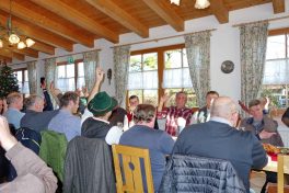 Gut besucht war im Gasthof Stocker in Atzing die heurige Jahresmitgliederversammlung, die aus verschiedenen Gründen vom Frühjahr zum Jahresschluss verlegt werden musste. Dingler freute sich, dass unter den Mitgliedern auch einige Ortsvereins-Vorsitzende sowie Ehrenbürger Michael Anner senior waren. Sein besonderer Dank galt den drei Ortsverbänden von Rimsting, Prien und Wildenwart und in diesen den Fähnrichen und Fahnenbegleitern, die bei Beerdigungen und größeren Festen ausrücken und den Verein nach außen vertreten. Ein weiteres „Vergelt´s Gott“ gab es für Pius Grannetsberger, der sich um die Aufbewahrung der Fahne kümmert. Bezirks-Schriftführer Hans-Peter Priller, Ortsvorsitzender von Wildenwart erinnerte in seinem Bericht an die letzte Zusammenkunft im Gasthof Seehof in Rimsting. Bezirks-Kassier Walter Jänicke, zugleich Ortsvorsitzender von Prien erläuterte trotz der Niedrigzins-Politik einen zufriedenstellenden Kassenstand zumal es auch im abgelaufenen Geschäftsjahr gelungen ist, ohne Verwaltungskosten auszukommen. Zustimmung erhielt der Kassenprüfungsbericht von Rainer Knoll und Paul Obermaier, beide Prüfer wurden für das nächste Jahr in ihrem Amt bestätigt. In der freien Aussprache erläuterte Bezirksvorsitzender Klaus Dingler die oftmals nicht ganz einfachen Abstimmungen und Verhandlungen mit der Regierung von Oberbayern. „Auch wenn wir nur ein kleiner und ehrenamtlich geführter Verein sind, werden wir nach europäischem Versicherungsrecht mit viel Bürokratie behandelt. Den sich stets ändernden Anforderungen werden wir in Zukunft nur noch mit einer externen Fachkraft gerecht werden können“ – so Klaus Dingler. Josef Steinberger, Ortsvorsitzender von Rimsting, machte noch auf einen weiteren Engpass aufmerksam als er sagte: „Wenn wir mit unserer Fahne ausrücken wird es immer schwieriger an Wochentagen die Mannschaft zusammen zu bekommen, da die Arbeitgeber immer weniger für den ehrenamtlichen Dienst frei geben“. In den nächsten Sitzungen will die Vorstandschaft für das Finanzwesen und für die Beerdigungen neue Regelungen beraten. Der nächsten Bezirksversammlung sollen dann die Vorschläge unterbreitet werden, diese findet am Sonntag, 19. April vormittags im Hotel Bayerischer Hof in Prien statt.