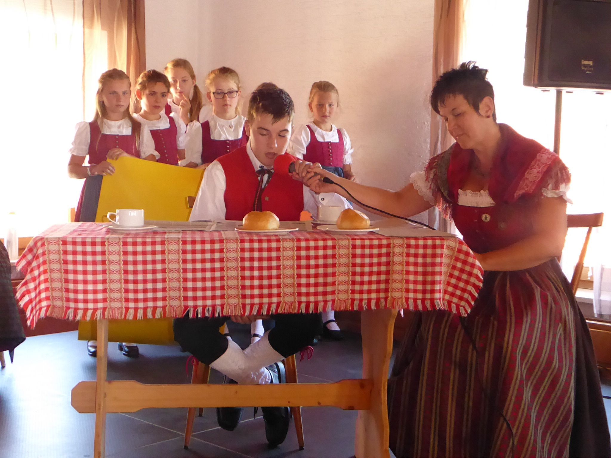 Wichtigkeit des Wirtshausvergnügens Schafkopf nahmen bei ihrem lustigen Sketch Manuela und Michael Aumer von der Hunderdorfer Jugend auf die Schippe.