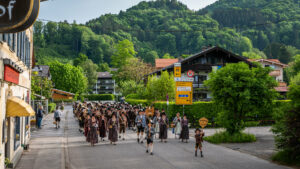 Schon am frühen Morgen marschieren die Musikkapellen Neubeuern, Rohrdorf und Samerberg durch Nußdorf zum Festzelt.