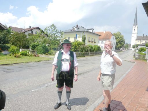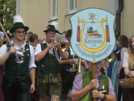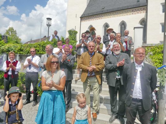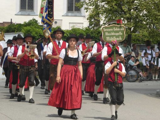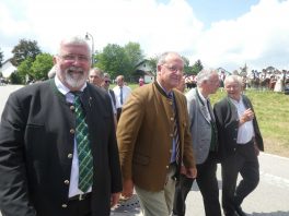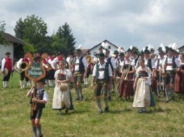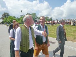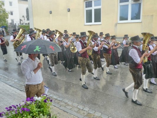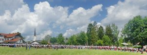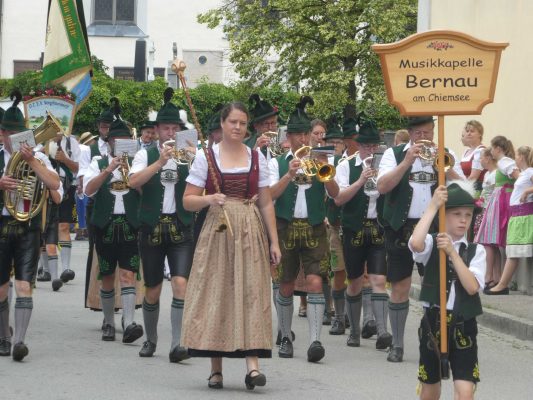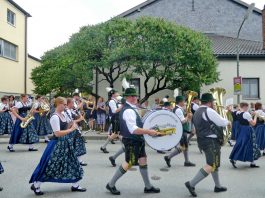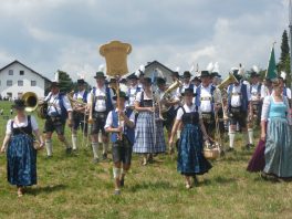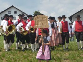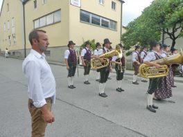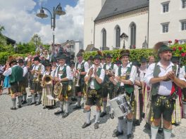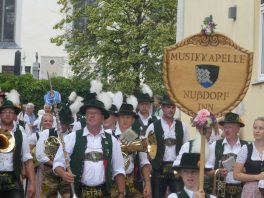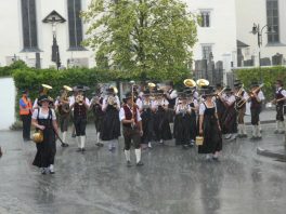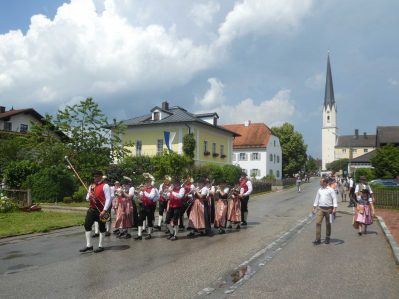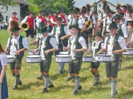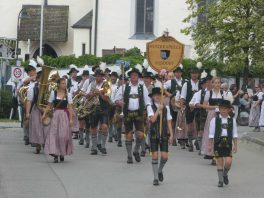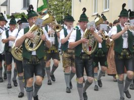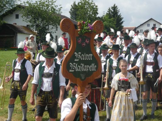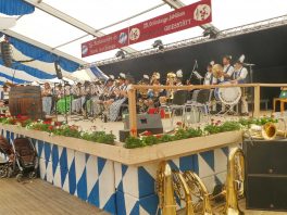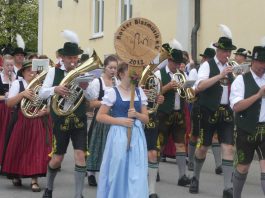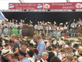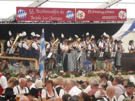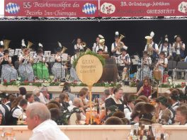 Das 55. Bezirksmusikfest des Musikbundes Nieder- und Oberbayern für den Inn- und Chiemgau, das 35jährige Jubiläum der gastgebenden Griesstätter Musikkapelle, ein neun Meter hoher Notenschlüssel mit Verdacht auf Weltrekord, 30 Musikkapellen und 15 Trachten-, Schützen- und Ortsvereine prägten das Dorf Griesstätt für einen schönen Sonntag lang. Den Auftakt bildete ein Gottesdienst, bei dem Pfarrer Klaus Vogel in seiner Predigt unter freiem Himmel sagte:  “Musik verbindet und Musik schafft Gemeinschaft schafft Gemeinschaft. Musikanten müssen lernen, ihr Instrument erklingen zu lassen und Christen müssen lernen, über ihren Glauben verantwortungsbewußt zu reden”. Bürgermeister Robert Aßmus von Griesstätt und Landrat Wolfgang Berthaler als Landrat von Rosenheim würdigten in ihren Grußworten die Bedeutung der Blasmusik für Gesellschaft, Kirche, Dorfgemeinschaft und Ehrenamt. Den Abschluß des Gottesdienstes bildeten Gemeinschaftsstücke und der Musikantengruß, anschließend zogen die Musikanten, Vereine und Gäste ins große und auf verschiedenen Ebenen erstellte Festzelt. Einige Musikkapellen stellten sich noch einer Marsch-Bewertung, wobei sich zeitweise eine Wolke entlud und vor allem die Samerberger Musikkapelle wurde dabei voll von einem Regenguss erwischt. Im Festzelt spielte dann die Blaskapelle Prien aus, sie ist Gastgeber für das nächstjährige Bezirksmusikfest in Prien am Sonntag, 2. Juni.