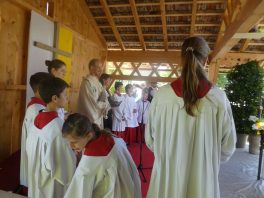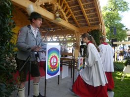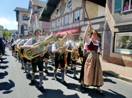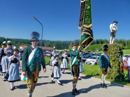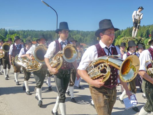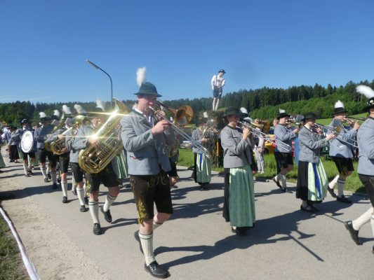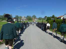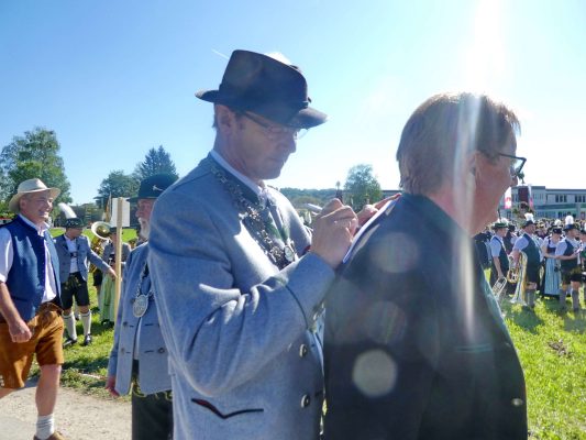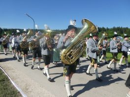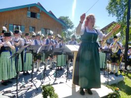 - „Bayern, wie es bayerischer und festlicher nicht sein kann!“ – diese Feststellung traf den Charakter, den das Bezirksmusikfest des Musikbundes Ober- und Niederbayern, Bezirk Inn-Chiemgau am 190. Geburtstag der Priener Blaskapelle prägte. Rund 1.000 Blasmusikerinnen und Blasmusiker aus 27 Kapellen fanden sich ein, um miteinander und füreinander zu feiern. Viel Lob gab es dabei für die Blaskapelle und die Feuerwehr als die Organisatoren der Priener Festwochen, denn der Festtag lief ab wie am Schnürchen.Der erste Tages-Höhepunkt war ein ökumenischer Gottesdienst im Obstgarten vor dem Haus von Resi Bartl. Der vom Trachtenverein Hittenkirchen zur Verfügung gestellte Feldaltar wurde unter der Anleitung von Markus Stocker aufgebaut. Pfarrerin Sabrina Hoppe von der Evangelischen Kirchengemeinde feierte den Gottesdienst mit Pfarrer Klaus Hofstetter von der Katholischen Pfarrgemeinde (die Neuapostolischen Kirchenvertreter waren zeitgleich in Düsseldorf und konnten deshalb nicht dabei sein). „Unausgeschlafen, frisch, frei und fröhlich sind wir hier zusammengekommen und wollen Dienst an Gott feiern“, so Pfarrer Hofstetter, dem Pfarrerin Hoppe gemäß dem Evangelium vom reichen Fischfang hinzufügte: „Musik und Töne können Traurigkeit vertreiben, deswegen ist zu empfehlen: Ab durch die Mitte in D-Dur und damit weg vom Alltags-Chaos, reden wir die Gegenwart nicht klein, sondern spielen und singen wir Lieder zum Aufstehen“. Für die musikalische Gestaltung sorgte die Festmusikkapelle Prien unter der Leitung ihres Dirigenten Stefan Fußeder mit der vor gut 20 Jahren von Sebastian Weyerer eigens für die Priener Blaskapelle komponierten Festmesse. Sebastian Weyerer, der langjährige Dirigent der Blaskapelle gehörte zu den Ehrengästen, die von Bezirksvorsitzendem Leonhard Eisner begrüßt wurden. Weitere Ehrengäste waren Landtagsabgeordneter Klaus Stöttner, die Bezirksräte Sebastian Friesinger und Sepp Hofer, Landkreis-Kulturreferent Christoph Maier-Gehring sowie die drei Priener Bürgermeister Jürgen Seifert, Hans-Jürgen Schuster und Alfred Schelhas. In ihren Grußworten gratulierten die geschäftsführende Präsidentin des Musikbundes Ober- und Niederbayern Friederike Steinberger („Bei diesem heutigen Anblick ist die Heimat Oberbayern sicht-, spür-, hör- und erlebbar“) und Dieter Kannengießer als stellvertretender Rosenheimer Landrat („So viele Musiker sind einfach eine Freude“) der Priener Blaskapelle zu ihrem Jubiläum. Bürgermeister und Schirmherr Jürgen Seifert dankte der Priener Blaskapelle dafür, dass sie in ihrer langen Geschichte ihren Heimatort Prien weltweit mit Auftritten bis Amerika und China gut vertreten hat. „Ohne Musik wäre alles Nichts“ – mit diesem Satz von Wolfgang Amadeus Mozart beendete Seifert sein Grußwort. Alsdann gab es drei Choräle, an denen sich alle anwesenden Musikanten aktiv beteiligten. Das erste Stück „Fest der Freude“ dirigierte Bezirks-Dirigent Christoph Danner, dann gab Stefan Fußeder den Takt an beim Marsch „Berglandkinder“ und schließlich dirigierte Michaela Haindl den von ihr selbst komponierten Landkreis-Marsch „Mein Rosenheimer Land“. Den Abschluss bildete die gemeinsam gesungene Bayernhymne, dabei stand am Dirigentenpult der MON-Verbandsjugendleiter Benedikt Paul. Ehe sich der Festzug von Trautersdorf los bewegte, bedankte sich Musikvorstand Stefan Hackenberg für den erfahrenen Zusammenhalt bei den Vorbereitungen sowie bei den Musikanten und Besuchern für ihr zahlreiches Kommen. Die Kollekte des Gottesdienstes stellt die Blaskapelle Prien der Kirchenmusik, der Chiemseer Tafel und der Hospiz-Arbeit zur Verfügung.Farbenfroh, mit viel Blasmusik, mit zwei Festkutschen für die Geistlichkeit und für die Bürgermeister sowie mit einem eigenen Festwagen der Blaskapelle ging der Festzug von Trautersdorf in die Priener Ortsmitte und von dort auf der neu geteerten Bernauer Straße zum Festzelt. Dort erklang abermals Blasmusik und der Tag klang mit kulinarischer Einkehr, mit Besuch der Kaffeestube oder der Bar und mit vielen Gesprächen aus. Die Priener Festwochen gehen am Montag, 3. Juni mit einem Festausklang und mit den Sulzberger Musikanten um 19 Uhr zu Ende (über die Wertungsspiele am Samstag in der Franziska-Hager-Mittelschule und über die Marsch-Bewertungen am Sonntag berichten wir noch gesondert).Foto/s/: Hötzelsperger – Eindrücke vom 56. Bezirksmusikfest des MON Ober- und Niederbayern Bezirk Inn-Chiemgau in Prien.