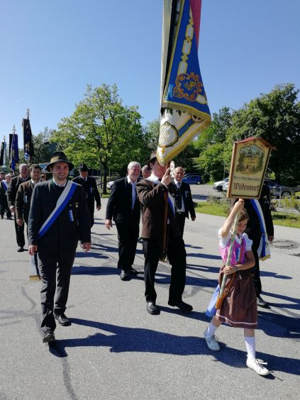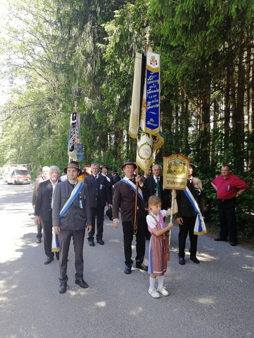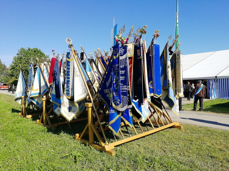 Der Festzug vom Gottesdienst zurück in den Ort war in vier Züge aufgeteilt, angeführt von vier Blaskapellen sowie 100 Fahnenabordnungen der Veteranen- und Ortsvereine, die mit vielen Mitgliedern teilnahmen. Den Ausklang bildete ein Beisammensein mit Mittagessen im voll besetzten Festzelt.