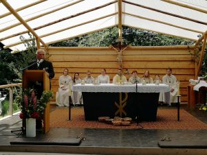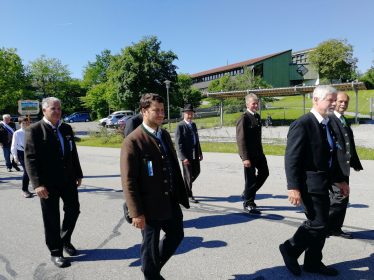 „200 Jahre Veteranenverein, ein stolzes Jubiläum. Es wäre für die Menschen besser gewesen, seine Gründung nach dem Ende der napoleonischen Kriege wäre gar nicht notwendig gewesen, aber es ist gut, dass es ihn heute nach 200 Jahren immer noch gibt“, begrüßte Pfarrer Fabian Orsetti die Gottesdienstteilnehmer beim 200-jährigen Gründungsjubiläum verbunden mit dem 57. Bezirkstreffen der Interessengemeinschaft der Krieger- und Veteranenvereine sowie der Soldatenkameradschaften im Landkreis Rosenheim (IG Rosenheim) zum Festgottesdienst am Bauhofpark in Stephanskirchen. 100 Fahnen der Ortsvereine und der Soldatenkameradschaften aus dem ganzen Landkreis umstanden den Altar, die Bundestagsabgeordnete Daniela Ludwig, stellvertretende Landrätin Marianne Loferer, der Landtagsabgeordnete Otto Lederer und MdL a.D. Adolf Dinglreiter feierten zusammen mit den Festbesuchern den Gottesdienst. Bürgermeister Rainer Auer gliederte in seiner Ansprache die 200 Jahre Vereinsgeschichte in zwei Abschnitte: die Zeit von der Gründung bis zum Ende der großen Kriege in Mitteleuropa 1945 mit ihren verheerenden Auswirkungen für die Bevölkerung und die Zeit nach dem letzten großen Krieg, die Europa über 70 Jahre Frieden und Wohlstand bescherte. „Es geht uns so gut wie noch nie, wir müssen weiter unsere Gemeinsamkeiten in Europa suchen und herausstellen und dürfen uns nicht von den Stimmen beeinflussen lassen, die nach dem Trennenden suchen. Diese Engstirnigkeit ist in tiefstem Masse unchristlich und daher abzulehnen“. Bürgermeister Auer dankte den Veteranenvereinen der Region, dass sie die Erinnerung pflegen und damit alle mit großem Engagement mahnen, dass Kriege in Europa kein Mittel der Politik mehr sind.