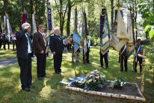 Einen Kranz legten gemeinsam zu den Klängen des Liedes vom Guten Kameraden der Stephanskirchner Vereinsvorsitzende Donatus Schiffer, Pius Graf von der IG Rosenheim und Heinrich Rehberg vom Volksbund nieder.