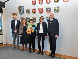 Landrat Bernhard Kern (v.r.); Barbara Müller, Freiwilligenagentur BGL; Elisabeth Homberg, Freiwilligenagentur BGL-Süd; Caroline Puhlmann, Arbeitsbereichsleitung Seniorenarbeit, Behindertenarbeit, Freiwilligen-Engagement und Integration, und Arthur Steinbach, Fachbereichsleitung Personalmanagement