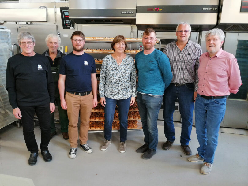 Bericht und Foto: Biosphärenregion BGL: Landwirte, Mühle, BÄKO und die Bäckerinnung besiegeln ihre Kooperation für das „Berchtesgadener Land Brot“ – von links nach rechts: Johann Gfal-ler (sen.), Matthias Kreuzeder, Johann Gfaller (jun.), Irmi Rossingol, Christian Spitz, Stefan Neumeier, Andreas Neumeier
