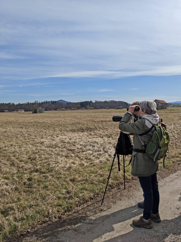 Bei der gemeinsamen Veranstaltung vom Landesbund für Vogel- und Naturschutz und der Biosphären-Verwaltungsstelle im März konnte eine Vielzahl an Wiesenbrütern beim Blick durch das Fernglas gesichtet werden. Bei bestem Wetter zeigten sich u.a. Kiebitz, Feldlerche, Wiesenpieper und Bekassine – ein voller Erfolg und ein tolles Erlebnis für die rund 35 Teilnehmenden!
