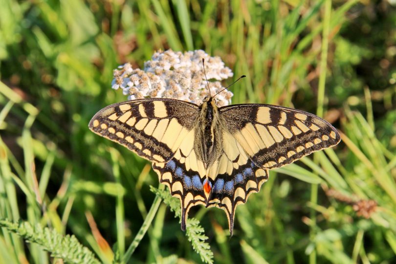 Bild 3: Schwalbenschwanz: Der Schwalbenschwanzfalter gilt in unseren Breiten als einer der größten und prächtigsten Falter, hier an einer Schafgarbe