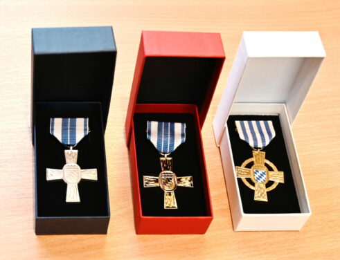 Die Ehrenzeichen für 25, 40 und 50 Jahre Dienstzeit bei der Feuerwehr.