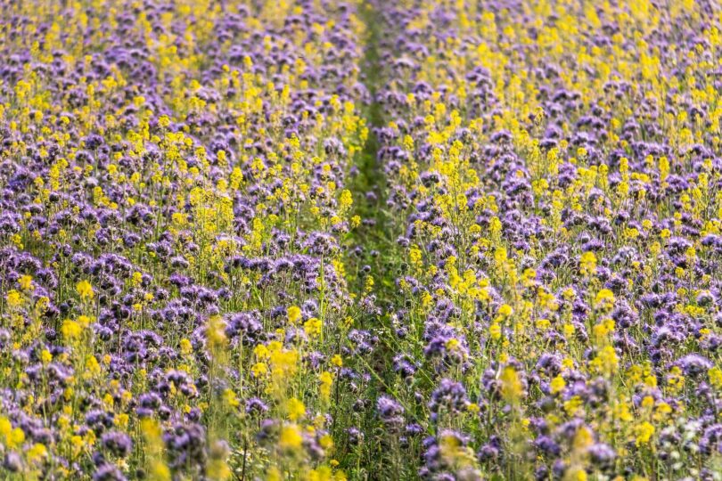 Auch sind viele der spätblühenden Gründüngepflanzen nicht zuletzt gut für Insekten: So die Bienenweide Phacelia, die mit ihrem reichen Nektarangebot eine wichtige Nahrungsquelle für Bienen ist.