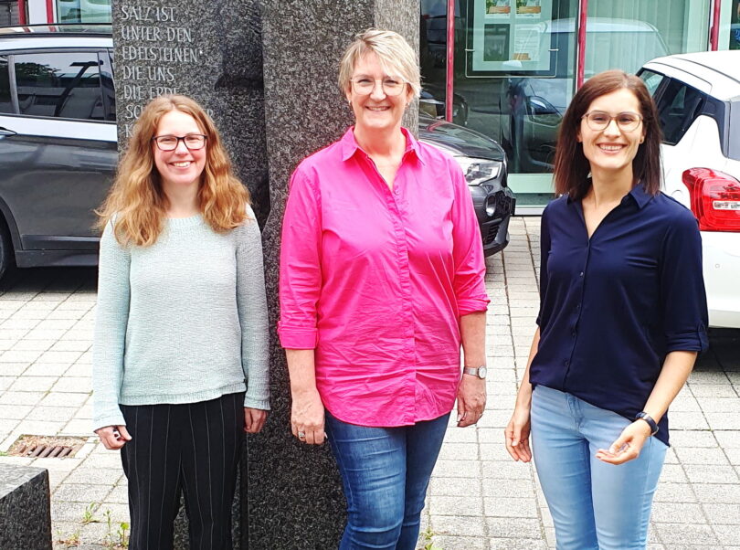 Bericht und Foto: LRA Berchtesgadener Land – Die Arbeitsbereichsleitungen Karina Grabner (r.) von der Betreuungsstelle und Caroline Puhlmann (l.) von der Senioren- und Behindertenarbeit sowie vom Pflegestützpunkt begrüßen Sabine Ruhstorfer (Mitte) vom Bayerischen Blinden- und Sehbehindertenbund an ihrem ersten Beratungstag im Landkreis Berchtesgadener Land.