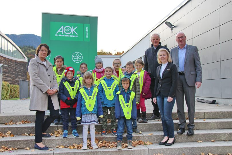 Verkehrswacht und AOK setzen sich auch in diesem Jahr gemeinsam für mehr Sicherheit am Schulweg ein und statten Erstklässler aus 19 Schulen im Landkreis Berchtesgadener Land mit reflektierenden Überwürfen aus.