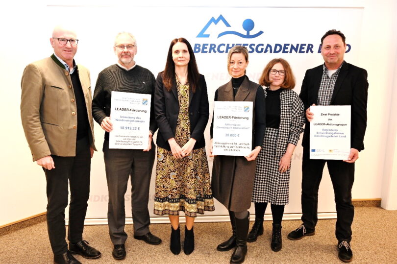 Der Vorsitzende der Lokalen Aktionsgruppe (LAG) „Regionales pEntwicklungsforum Berchtesgadener Land“ Landrat Bernhard Kern hat jüngst zusammen mit LAG-Managerin Michaela Schenkl (Schnürer & Company GmbH) und Stefan Neiber von der LAG-Geschäftsstelle die LEADER-Zuwendungsbescheide für zwei Projekte im Berchtesgadener Land überreicht. „Nachdem der Landkreis im vergangenen Jahr den Förderbescheid für das LAG-Management erhalten hat, bin ich sehr froh darüber, dass nun mit der Zusage einer LEADER-Förderung zwei weitere Projekte mit der Umsetzung starten können,“ freute sich Landrat Kern im Rahmen der Übergabe der Zuwendungsbescheide.