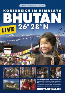 Das Königreich Bhutan liegt mitten im Himalaya und ist von zahlreichen über 7000 Meter hohen Bergen umgeben. Etwas mehr als 600.000 Menschen leben dort auf einer Fläche etwas mehr als 40.000 qkm, und der Rhytmus dieser Menschen ist bestimmt durch die steten Bewegungen der Gebets- mühlen, die sich im ganzen Land befinden… und jeder, der diese Gebetsmühlen in Bewegung setzt, kann in diesem Leben gutes Karma ansammeln und schlechtes Karma auflösen – auf dem Pfad der Erleuchtung. In keinem anderen Land der Welt wird der Buddhismus auf so eindringliche Weise gelebt wie in Bhutan. Es ist das einzige Land der Welt, das die tantrische Form des Mahayana-Buddhismus als Staatsreligion praktiziert, und die Mönche in den mächtigen Dzongs leben diesen Glauben seit Jahrhunderten auf intensivste Weise.