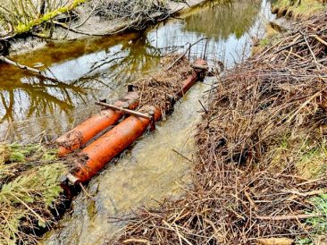 Bericht und Bilder: Polizeiinspektion Prien – Bilder zeigen intakten und zerstörten Biberdamm