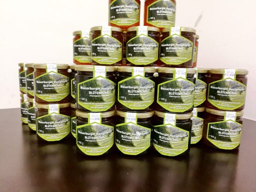 Außerdem rechnen wir mit 20 bis 30 Kilo Honig pro Volk. Das ist vom Wetter und der Größe des Volkes abhängig. Der Honig wird in Gläser abgefüllt und im hauseigenen Laden verkauft. (Interview: we)