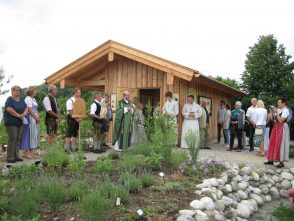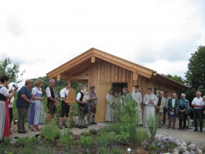 „Wir möchten zeigen, wie nah wir Menschen mit der Natur leben können und müssen und dass wir alle etwas tun können für die Artenvielfalt in unserer Umgebung“, umriss Pittenharts Bürgermeister Sepp Reithmeier die Ziele der Initiatoren und Förderer des Umweltbildungsangebots „Bienen und Natur am Hilgerhof“ in Pittenhart-Niederbrunn bei der Einweihungsfeier des Herzstücks des mit EU-Mitteln aus dem Leader-Programm geförderten Projektes, einem begehbaren Schaubienenhaus mit mehreren Räumen, in dem Kinder, Jugendliche und Erwachsene auf Tuchfühlung gehen können mit Bienenvölkern in ihren Behausungen und den Aufgaben des sie betreuenden Imkers. Reithmeier ist Vorsitzender des „Kulturvereins Hilgerhof“ und des Imkervereins Obing-Pittenhart, und konnte so die Zusammenhänge zwischen zwei wichtigen Projekten der Leader-Region „Chiemgauer-Seenplatte“ besonders gut erklären. „Bienen und Natur am Hilgerhof“ sei gewissermaßen eine Erweiterung der bereits vor Jahren abgeschlossenen Umgestaltung des musealen Bauernhofs „Hilgerhof“ in eine Dokumentations- und Begegnungsstätte, deren kultureller Betrieb durch den Kulturverein Hilgerhof abgesichert wird. Von Anfang an sei es im Kulturverein klargewesen, dass nicht nur das Gebäude die Kultur der Region repräsentieren solle, sondern auch die Einbindung des Hofes in sein kulturlandschaftliches Umfeld. „Mit Schaubienenhaus und Umweltbildungsangeboten können wir nun diesen Anspruch noch besser verwirklichen.“ Mit Streuobstwiese, Blühstreifen, Hecken, einem renaturierten Bachlauf und landwirtschaftlich genutzten Flächen sei ein Umfeld geschaffen worden, das der historischen Tradition im Chiemgau und den Bedürfnissen der Bienen bestens entspricht.