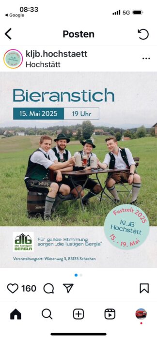 Davon diese Bilder – weitere Veranstaltungen sind am Freitag, 16. Mai ein Weinfest mit der Anzwies-Musi, am Sonntag, 18. Juni der Festsonntag mit Gottesdienst (ökumenisch mit der Harthauser Musi ab 10.30 Uhr) und Zeltbetrieb sowie abschließend ein Kesselfleischessen am Montag, 19. Mai ab 19 Uhr mit der Hochstätter Musi.