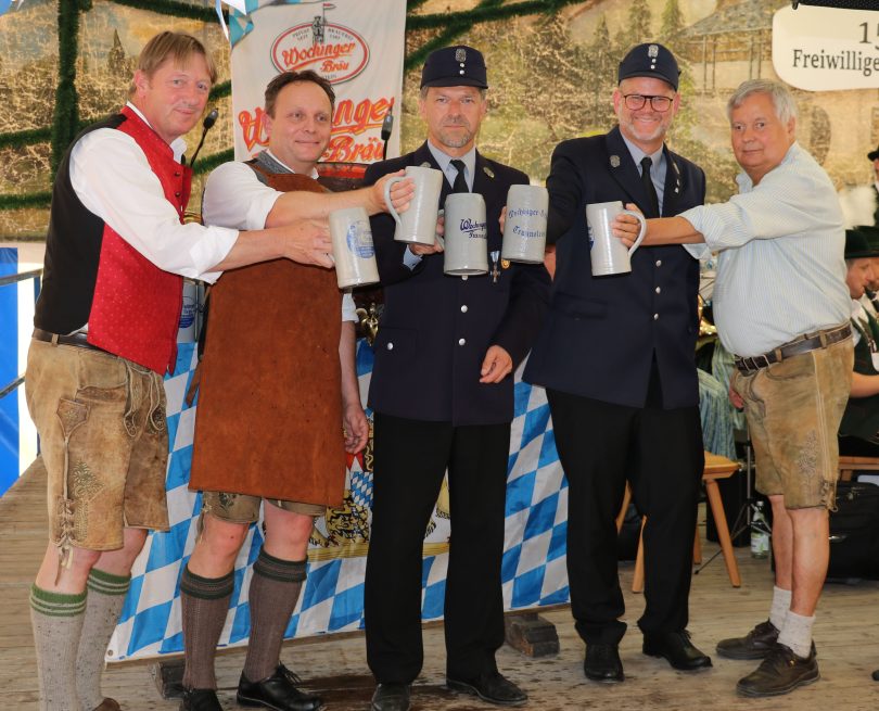 Zu den schönsten Pflichten gehört es für einen oberbayerischen Bürgermeister als Schirmherr eines Festes das erste Fass Bier anzuzapfen. Bürgermeister Daniel Mair feierte beim Fest zum 150-jährigen Bestehen der Feuerwehr Umrathshausen seine Premiere: zum allerersten Male zapfte er als Schirmherr der Festtage ein Fass an. Mit dem traditionellen „Ozapft ist“ verkündete Bürgermeister Mair den Beginn der Festtage zum Jubiläum der Feuerwehr. Drei Schläge brauchte er, bis er den Hahn beim Anzapfen auf der Bühne im gut besuchten Umtrathshauser Festzelt ohne Spritzen ganz sicher im ersten Fass hatte. Mair dankte Festwirt Werner Heinrichsberger, seiner Mannschaft, dem Vorsitzenden des Feuerwehrvereins Georg Noichl und der Dorfgemeinschaft von Umrathshausen für die Aufstellung und den Betrieb des Festzeltes und wünschte allen einen „ein griabiges Fest“