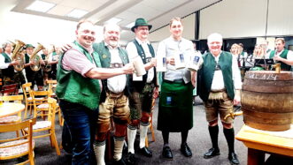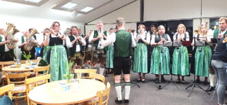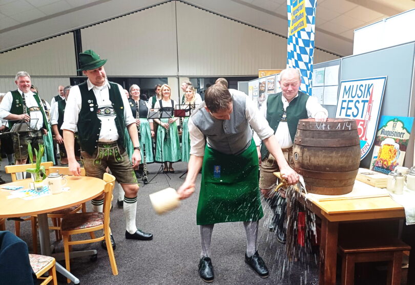 Bieranstich zum Auftakt des Musikfests von 3. bis 14. Juli in Übersee – Zum Auftakt des Bezirksmusikfests, bei dem der Musikverein Übersee-Feldwies heuer Ausrichter ist, gab es eine zünftige Feier mit Bieranstich und Schweinsbratenessen im Musikheim.