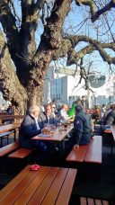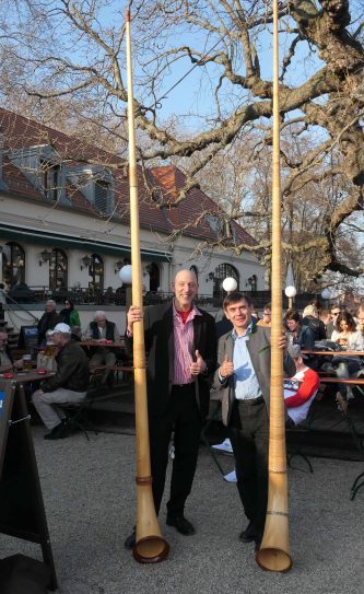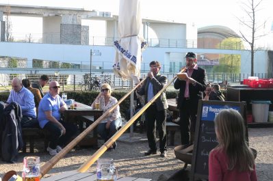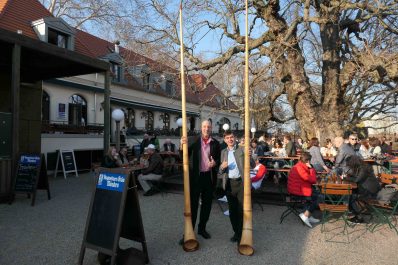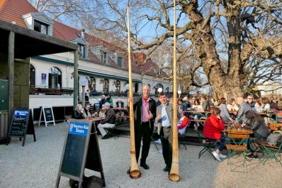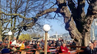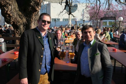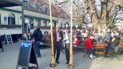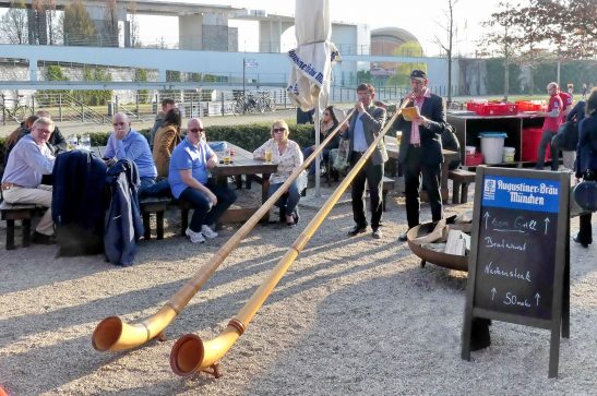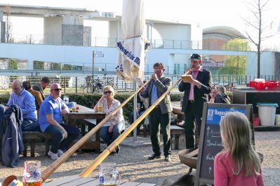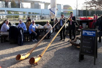 Es war wieder soweit, die Biergartensaison 2019 im Berliner Augustiner Zollpackhof einzuläuten. Mit Blasmusik von Half & Half und einem Berliner Alphorn-Duo wurde am letzten Wochenende der Biergarten der Augustiner-Gaststätte offiziell eröffnet. Bei schönstem Frühlingswetter, unter weiß-blauem Himmel, gab es frisch gezapftes Augustiner vom Holzfass, dazu die erste Bratwurst vom Grill. Pünktlich zum diesjährigen Saison-Auftakt zeigten sich auch die ersten Knospen an dem über 150 Jahren alten Kastanienbaum. Geschäftsführer Benjamin Groenewold, im zünftigen Bayern-Outfit, zeigte sich äußerst zufrieden und wünscht sich für die kommende Saison weiterhin viele solcher sonnigen Tage. Es war eine gelungene Biergarteneröffnung wie im Bilderbuch, in einem der schönsten Biergärten der Bundeshauptstadt, direkt an der Spree, gegenüber dem Bundeskanzleramt.