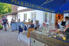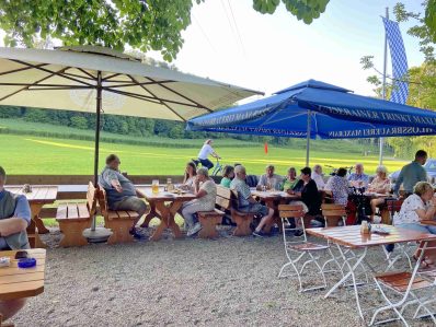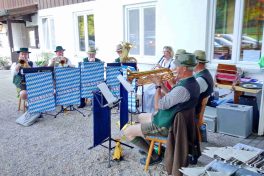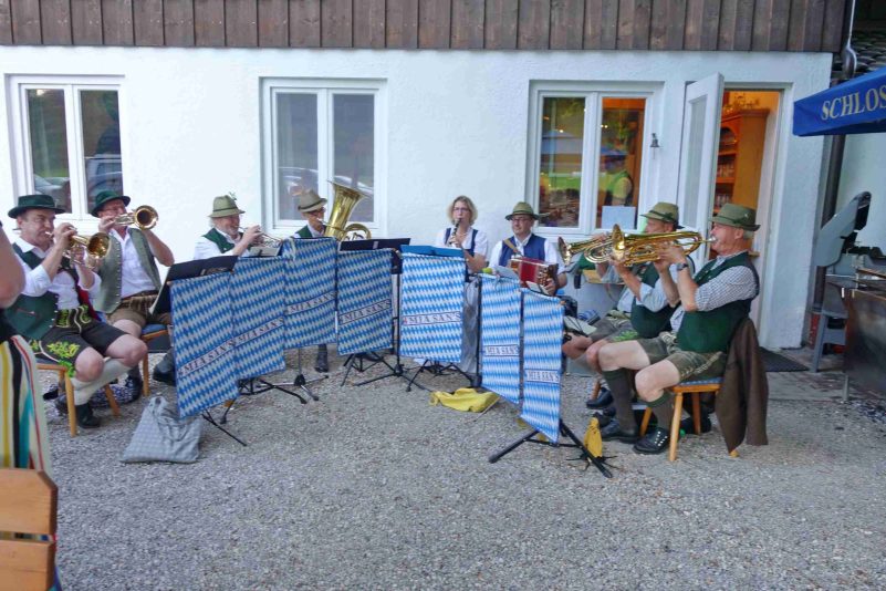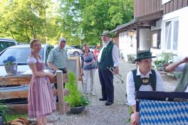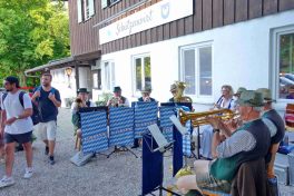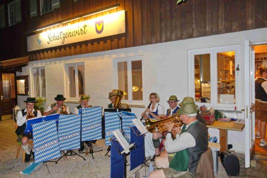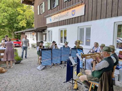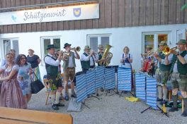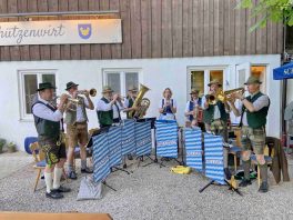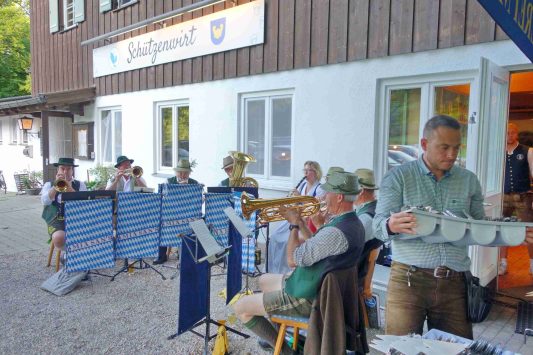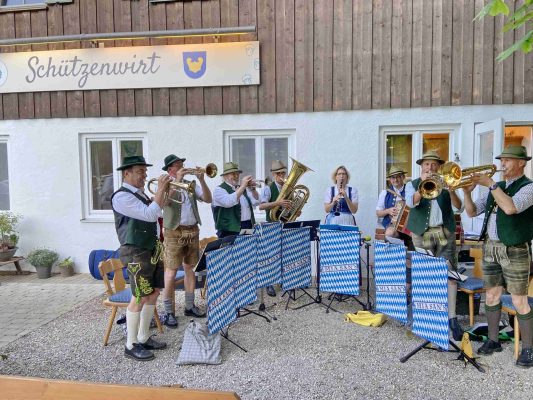 Bereits zum zweiten Mal in der nunmehr gut zweijährigen Zeit als Pächter des Gasthauses Schützenwirt hat Jonas Spensberger musikalischen Besuch aus Kirchheim bei München bekommen. Nach dem ersten winterlichen Gastspiel in den Innenräumen konnte nunmehr bei bestem Sommerwetter der Biergarten genutzt werden. Die Besucher erfreuten sich an Blasmusik, Bier und Biergarten und auch am Gesang der Kapelle „Mia sans“ mit dem Duo „Zwoagschroa“. Wirt Spensberger, der das Schützenhaus der Königlich Privilegierten Feuerschützengesellschaft kurz vor Beginn der Corona-Krise übernahm, kam zu folgendem positiven Resümee als er sagte: „Das war einer der schönsten Abende in der doch recht wechselhaften Coronazeit auch für unser Personal und es war bestimmt nicht das letzte Mal, dass wir Musikanten eine Gelegenheit geben, Biergartenmusik zu machen“.