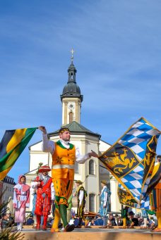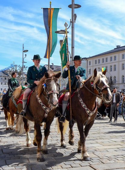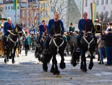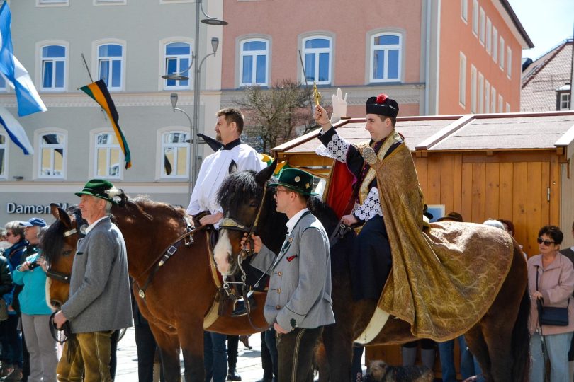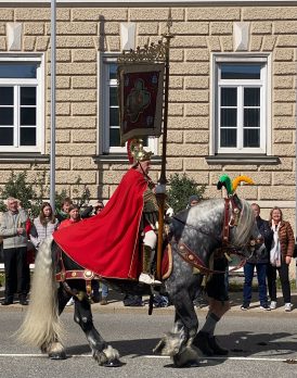 Wieder einmal war der Georgiritt in Traunstein von schönem Wetter begeünstigt und ein Zeugnis frommer, bayerischer Brauchtumspflege – wie diese Bilder des St. Georgs-Vereins vom Schwerter-Tanz und vom Umritt zeigen.