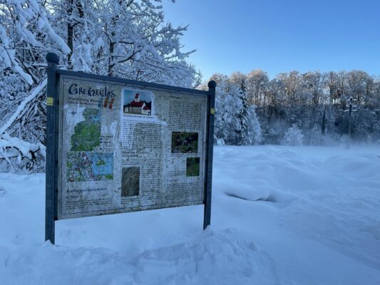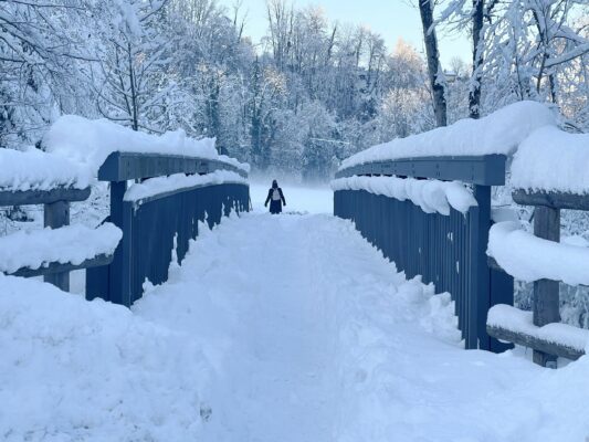 Einladend für eine Fuß-Wanderung ist derzeit das Winter-Wetter mit viel Schnee und dazwischen auch mit Sonnenschein.