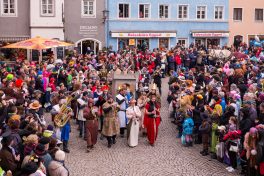 Eine Moderation durch Harry Petermann gab`s in der Hofstatt. Alle Faschingswägen und Fußgruppen wurden mit dem entsprechenden Motto angesagt. In der Hofstatt war auch für Speis und Trank gesorgt. Bereits seit dem Vormittag bot die Ortsgruppe des Bayerischen Roten Kreuzes Deftiges vom Grill und allerlei Getränke. Für die Besucher waren kostenlose Pendelbusse zusätzlich zum Stadtbus eingerichtet. Veranstalter ist Robert Stegmaier, der zusammen mit Wasserburgs Bürgermeister Michael Kölbl in der Pferde-Kutsche mitfuhr.