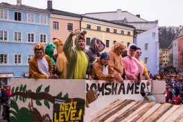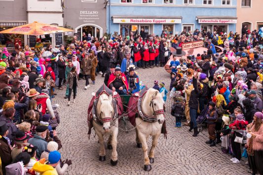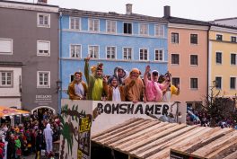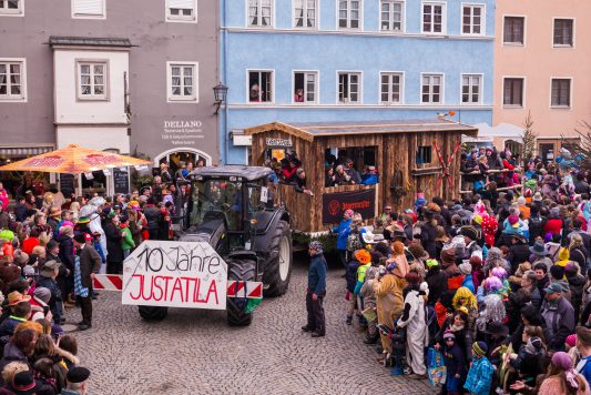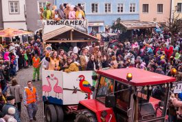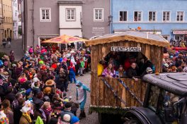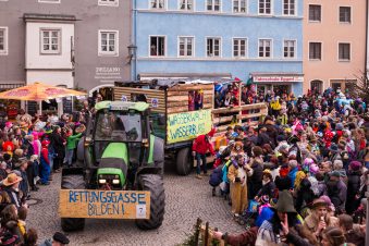 Im Wechsel zur Nachbargemeinde Edling fand heuer wieder in Wasserburg ein Faschingszug als närrischer Höhepunkt der feierwütigen aber friedlichen Narren statt. Der Zug schlängelte sich durch die Straßen und Gassen der Wasserburger Altstadt. Er begann an der Tränkgasse, zog dann durch die Salzsenderzeile, die Hofstatt und die Ledererzeile Richtung Weberzipfel. Nach dem Umzug traff man sich im großen Partyzelt am Gries. Dort legte ein DJ vom SAS-Team auf.