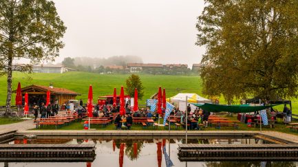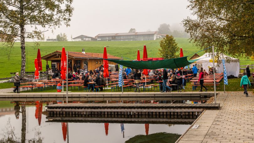 Auch am zweiten Herbstfesttag beim Naturbad auf dem Samerberg war es herbstlich frisch und zuweilen etwas nebelig. Dennoch kam bei den Besuchern eine gewisse Herbstfeststimmung auf. Dankbar waren sie vor allem für das rundum rosenheimer-herbstfest-nahe Angebot mit Musik, Steckerlfischen, Grillhendeln und Flötzinger Wiesn-Bier – wie diese aktuellen Aufnahmen zeigen.