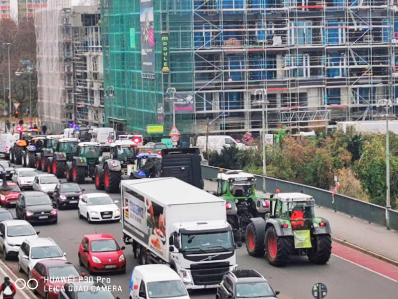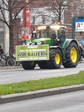Aktuell von der heutigen Groß-Demonstration von geschätzten 10.000 Landwirten aus ganz Deutschland hat der Berliner Gästebetreuer Manfred Hartfiel einige Bilder gemacht und nach Bayern gesandt. Mit Tafeln wie zum Beispiel “Niemand soll je vergessen, WIR BAUERN sorgen für das Essen” fuhren die Bauern mit ihren Traktoren durch die Berliner Innenstadt. “Die Berliner haben diese Demonstration gelassen hingenommen, zuweilen applaudierten sie sogar den Traktorkolonnen, weil sie Verständnis für die Nöte der Bauern, aber kein Verständnis für die Politik haben” – so Manfred Hartfiel in seiner Einschätzung und Beobachtung.