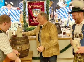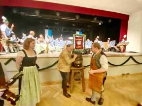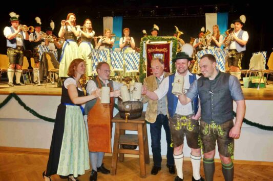 Davon dieser Bilderbogen mit Impressionen von der Jugendblaskapelle, der Erwachsenen-Kapelle, vom Anzapfen des Bürgermeisters eines Bierfasses vom Hofbräuhaus Traunstein und von den einstündigen Leviten der Ratschkathl´n Brigitte Sperger und Rosi Hell.