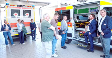 20250517_172033 … HK.jpg: In Eupen: Patricia Creutz-Vilvoye, Präsidentin des dort ansässigen Parlaments der Deutschsprachigen Gemeinschaft in Belgien, und (v.r.) die beiden evangelischen Pfarrer Dariusz Tomczak und Andreas Berg.