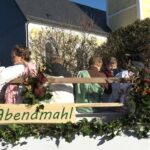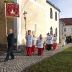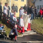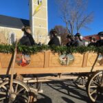 Dem Leonhardiritt in Greimharting geht traditionell ein feierlicher Gottesdienst mit dem örtlichen Kirchenchor voraus. In seiner Predigt erinnerte Pfarrer Philipp Werner an den Heiligen Leonhard. „Der Heilige Leonhard ist gerade mit seinen Attributen Gefangenschaft und Ketten ein Sinnbild auch in heutiger Zeit, wenn wir bedenken, dass wir uns von Egoismus, Sucht oder unguten Gewohnheiten befreien wollen“. Die Heiligen-Verehrung setzte sich dann auch beim segensreichen Umritt fort, unter anderem waren bei den zuweilen vierspännig gezogenen Motivwägen der Heilige Florian, der Heilige Ambrosius oder der Heilige Isidor zu sehen. Auch Kirchen-Modelle ergänzten das Gesamtbild der Frömmigkeit. Mitglieder der Rosserergemeinschaften, unter anderem von Breibrunn, Pietzenkirchen, Prien und Leonhardspfunzen verdeutlichten die gemeinsame Verehrung des Heiligen Leonhard und den hohen Wert der bäuerlichen Brauchtumspflege. Priener Blasmusikanten, Rimstimger und Greimhartinger Kindergartenkinder sowie Röckefrauen des Trachtenvereins „Ratzingerhöhe“ waren heuer ebenso mit dabei wie Ponys mit Kindern und Familien. Mit dem Umritt-Ende war der Festtag für die Greimhartinger in gewohnter Tradition noch lange nicht vorbei. Aufgrund des guten Wetters wurden die Ehrengäste, Rosserer und Besucher nicht nur in der voll besetzten Gemeindehalle von Priener Blasmusikanten unterhalten, auch im Freien ließ es sich gesellig und gut aushalten. Für die passende Bewirtung sorgten die Greimhartinger Frauen mit Kaffee und Kuchen sowie die Feuerwehr und Mitglieder der Ortsvereine für Brotzeit und Bier. Für Rimstings Bürgermeister Andreas Fenzl, der beim Umritt zusammen mit Priens Bürgermeister Andreas Friedrich, mit Bernaus Bürgermeisterin Irene Biebl-Daiber und mit der stellvertretenden Bürgermeisterin von Frasdorf Gabriele Stein auf der Ehrenkutsche von Sebastian Mayer (Fürstnerhof) Platz genommen hatte, war es das letzte Mal als Bürgermeister und Gastgeber, sein Resümee lautete: „Der heurige Leonhardiritt bot alles, was das Herz begehrte: Glauben, Tradition, Heimatliebe und Freude am Zusammenkommen“. Bürgermeister Andreas Fenzl und seine Amtskollegen aus Bernau, Frasdorf und Prien begannen in guter Tradition den Festtag mit dem Einzug in die Kirche und mit der Spende einer Wallfahrtskerze.