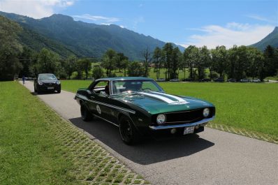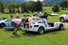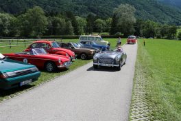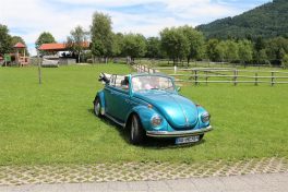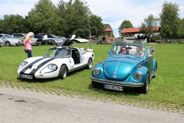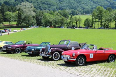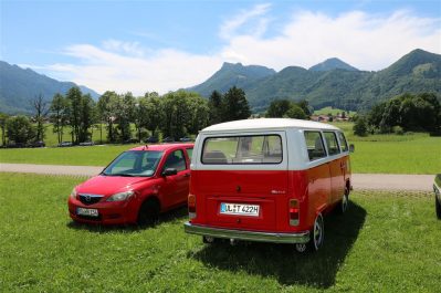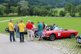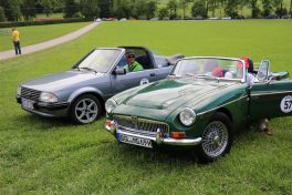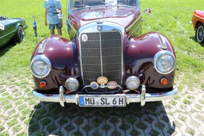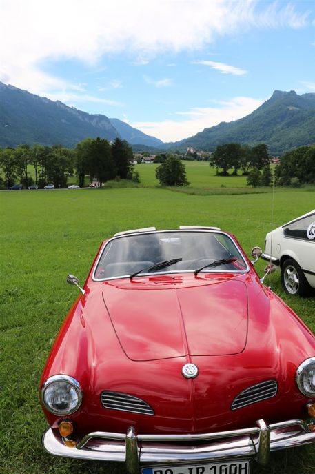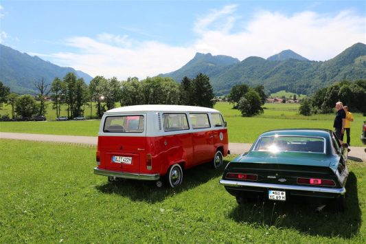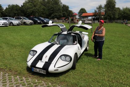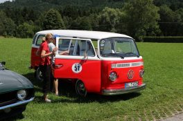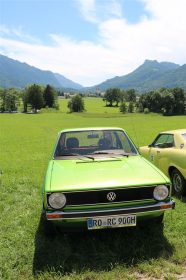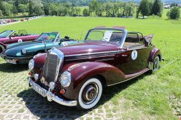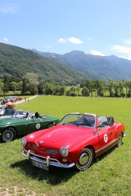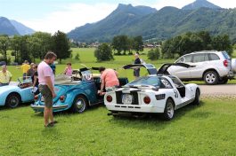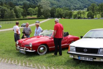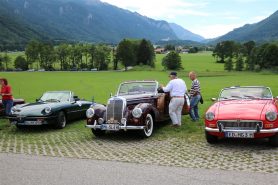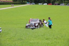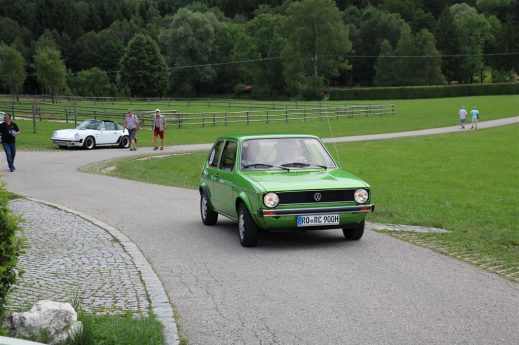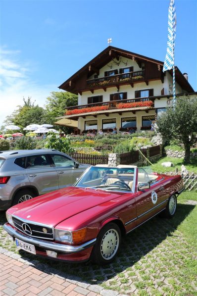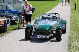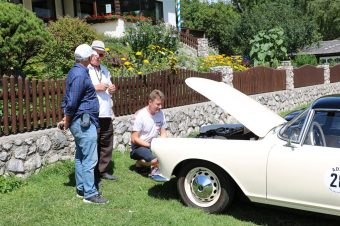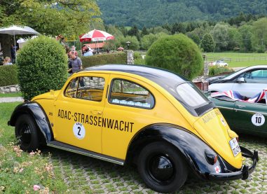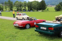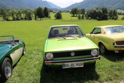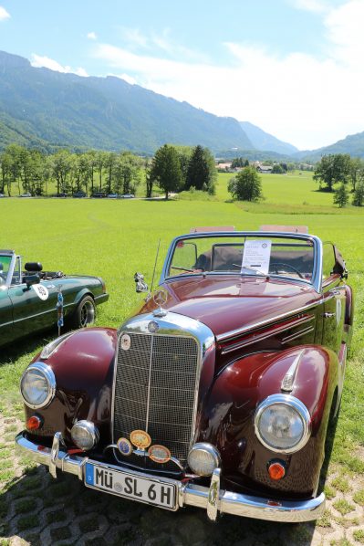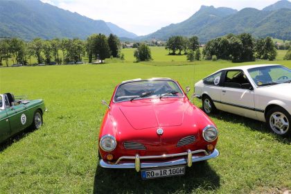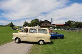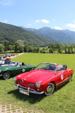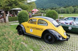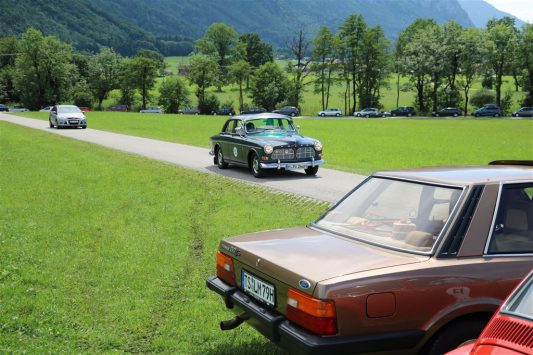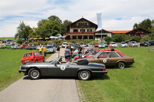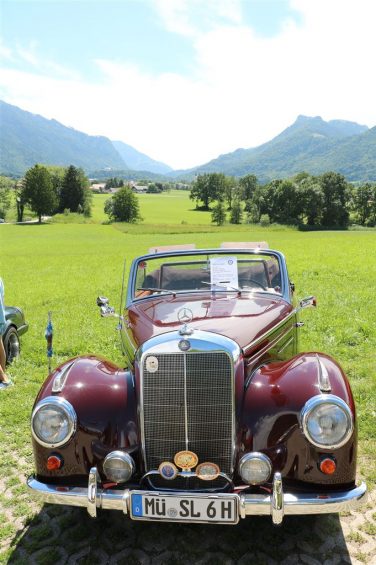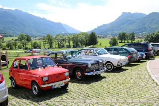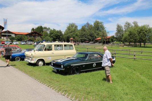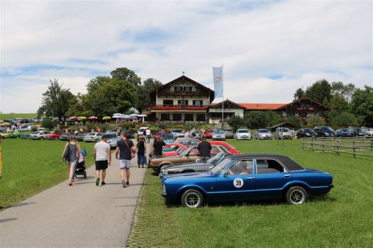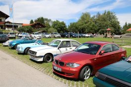 Zwei ganz unterschiedliche Prüfungen hatten die Teilnehmer der 8. ADAC Chiemgau Historic bei ihrer Rundfahrt durch den Chiemgau am Samstag zu bestehen: die Sommersonne ließ bei den Besatzungen Sehnsucht nach dem Komfort einer neuzeitlichen Klimaanlage aufkommen und prüfte ihre Durchhaltefähigkeit, dazu kamen noch die diversen Sonderprüfungen auf dem Weg zwischen Feichten/Alz über Chieming, Grassau, Aschau und Truchtlaching zurück an die Alz. „Im Vordergrund der Veranstaltung steht das „Oldtimer-Wandern“ mit historischen und klassischen Fahrzeugen“, so Klaus Robl, der Veranstaltungsleiter. „Wir verzichten auf eine Zeitwertung, vielmehr sollen die Teilnehmer auf der Wandertour geruhsam und stressfrei die Landschaft entdecken, sowie Kultur, Natur und Gastronomie der Region kennen lernen“. Wohl denen, die ein Cabrio hatten, die anderen schwitzten bei ihrer Rundfahrt in den vertrauten Automarken und Modellen, die heute schon zu den Oldtimern gerechnet werden. Zahlreiche Kleinwagen, die noch vor kurzer Zeit die Straßen bevölkerten und deren zwei Millionen Artgenossen der Abwrackprämie von 2009 zum Opfer fielen, waren bei diesen jungen Oldtimern mit dabei, echte Oldtimer aus der Zeit vor 1960 konnten an einer Hand abgezählt werden. „Das war mein erster Käfer, mein erster Golf wäre jetzt auch schon ein Oldtimer und diesen Ford 17M hat man nur Badewanne genannt“. Vorkriegsmodelle waren im Feld nicht mehr vertreten, der Opel Kapitän mit seinem glitzernden Chromgesicht und der Mercedes 170 von 1952 waren die beiden ältesten Teilnehmer. Die Aschauer Schlachtenbummler begutachteten vor dem Cafe Pauli fachmännisch die großen und kleinen Teilnehmer der Rundfahrt und fanden viele vertraute Modelle ihrer Kinder- und Jugendzeit auf dem Parcours wieder.