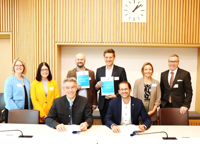 Wichtig ist Katharina Zeh und Katrin Röber, was auf kommunaler Ebene entwickelt werden kann – etwa innovative Projekte zwischen Schulen und außerschulischen Partnern, um den jungen Menschen die Berufsorientierung zu erleichtern. Ziel der Veranstaltung war außerdem, dass die Gäste des Bildungsgipfels viele Kontakte schließen konnten. Wie Katrin Röber betont, sei das eigene Netzwerk das A und O, bei dem im Fall der Fälle schnell und unkompliziert zurückgegriffen werden kann. Am Rande des Bildungsgipfels haben Stadt und Landkreis jeweils eine Kooperationsvereinbarung mit der Regionalen Entwicklungsagentur Bayern, kurz REAB, unterschrieben. Durch die Unterschrift von Oberbürgermeister Andreas März und Landrat Otto Lederer können ab sofort alle Mitarbeiter von Stadt und Landkreis das Beratungsangebot zum kommunalen Bildungsmanagement nutzen. Dies umfasst unter anderem die Teilnahme an Veranstaltungen, fachliche Beratung sowie die Begleitung von Projekten im Bildungsbereich. So sind Stadt und Landkreis Rosenheim zum Beispiel Teil zweier bayernweiter Arbeitsgruppen zum Fachkräftemangel und Ganztagslösungen.