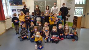 Den Kindern war sofort klar, dass es bei der Sparkasse ums Geld geht und hörten gespannt zu, als Margit Benda erzählte, dass die Sparkasse die Bio-Brotzeitbox Aktion mit einer Spende unterstützt und damit den Druck eines Info-Booklets, das auch in der Box enthalten ist, möglich gemacht hat.